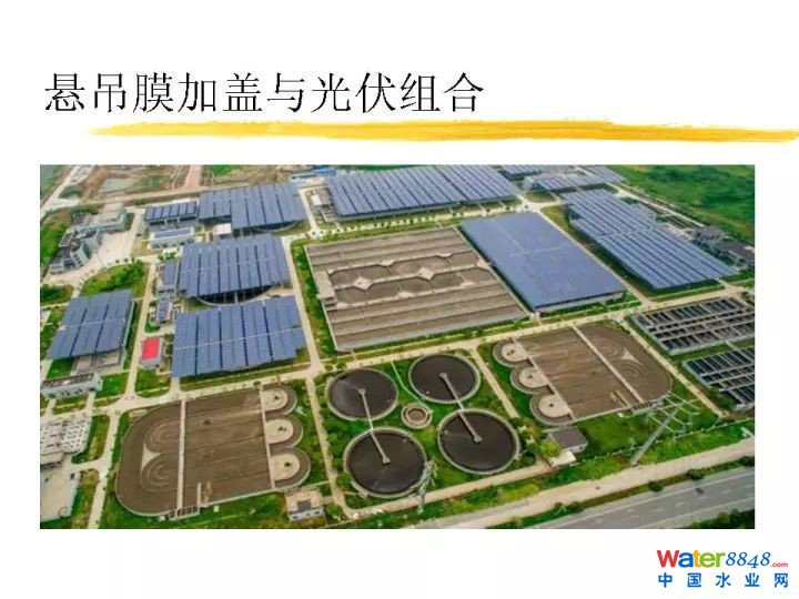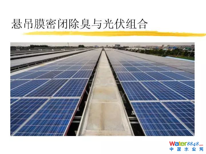 懸吊膜密閉技術可以很好跟光伏技術結(jié)合起來。這個特點是沒有起高,平膜布置,方便設置光伏板,臭氣密閉,不會腐蝕光伏板和支架。膜可以上人,方便維護檢修。
