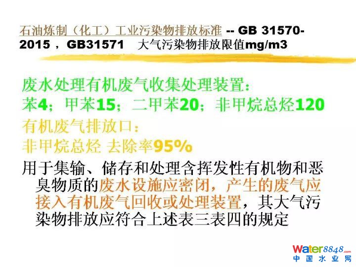 關于廢氣設計濃度,一般污水處理廠硫化氫大概1到10,氨氣0.5到5mg/m3,臭氣濃度1000到5000。按照這樣設計濃度情況下市政污水處理廠的臭氣不是難題,比較環(huán)保。難的是一些工業(yè)的污水,里面含有各種各樣的工業(yè)污染物。惡臭異味VOC凈化裝置要滿足如下有關設計規(guī)范。這個城市污水要滿足惡臭污染物排放標準。再有滿足《城市污水處理廠污染物排放標準》。這個標準除了對水指標提出要求,對臭氣也提出要求。這些都要同時滿足。各種各樣工業(yè)的在這里列好多工業(yè)的排放標準。我們這里也有可能好多做工業(yè)污水的。工業(yè)的這一個廢氣也提出來很多要求,特別是石油化學工業(yè)。石油煉制工業(yè)污染物排放標準,這個排放標準非常苛刻。比如我們在這里提了,這一個石油煉制工業(yè),石油化學工業(yè)這個收集標準是用于集輸,儲存和處理含揮發(fā)性有機物和惡臭異味廢水設施應密閉。產(chǎn)生廢氣應接入有機廢氣回收處理裝置。這些難度相對更大一些。這是煉油廠污水惡臭污染物排放標準,我們也做了不少這類項目。