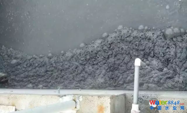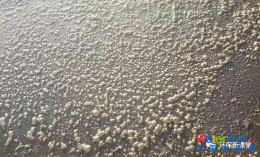 而且二沉池上有時(shí)也會(huì)有一層小氣泡堆積在表面,如圖;
