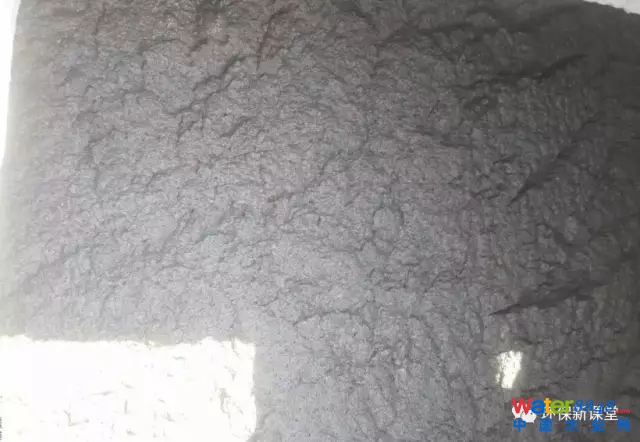 工藝為二級(jí)AO,在A1池面上經(jīng)常有一層厚厚黑黑的浮渣,里面包裹著氣泡,如圖,