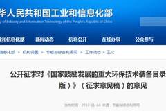 《國家鼓勵發(fā)展的重大環(huán)保技術(shù)裝備目錄(2017年版)》(征求意見稿)日前,工信部印發(fā)《國家鼓勵發(fā)展的重大環(huán)保技術(shù)裝備目錄(2017年版)》(...