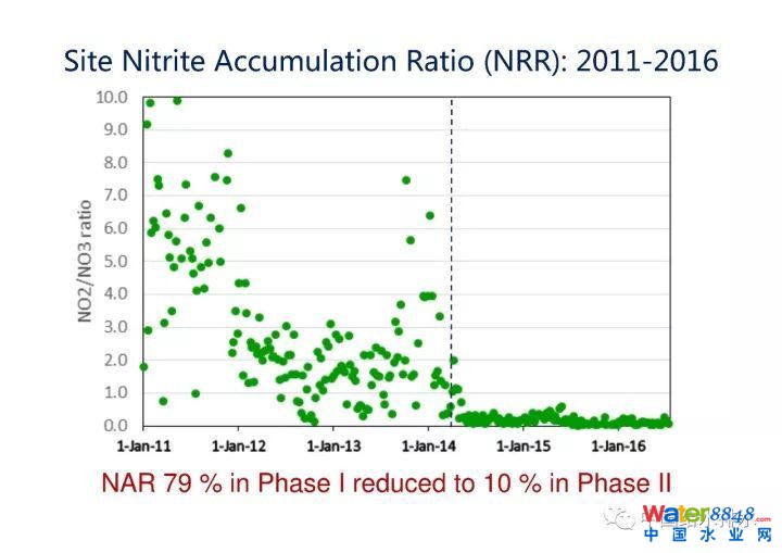 美國(guó)原來(lái)很多老廠 用兩點(diǎn)進(jìn)料工藝,再增加進(jìn)料點(diǎn)有顧慮,出水氨氮高達(dá)到5-6 mg/L。國(guó)內(nèi)考慮這個(gè)工藝考慮氨氮可能不能穩(wěn)定達(dá)到我們的要求。