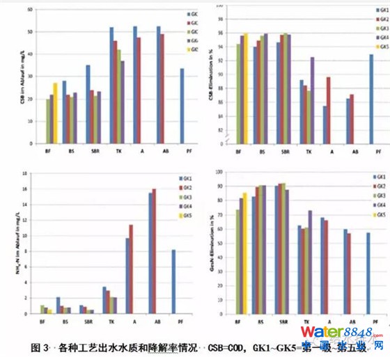 上述各種工藝在德國使用情況的調(diào)查詳見表5。各種工藝出水水質(zhì)情況詳見圖3。
