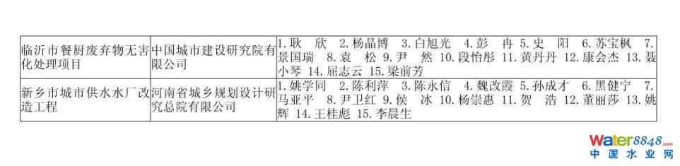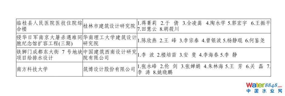 2017年度“給排水及水系統(tǒng)工程類(lèi)”全國(guó)優(yōu)秀工程勘察設(shè)計(jì)行業(yè)獎(jiǎng)名單