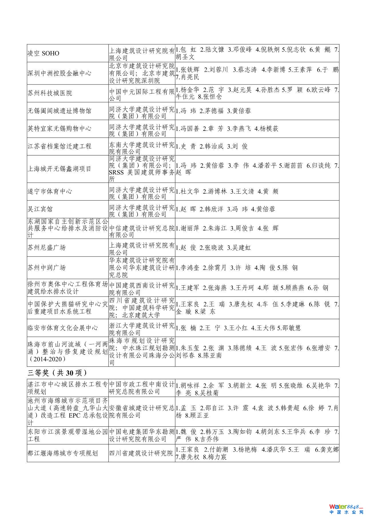 2017年度“給排水及水系統(tǒng)工程類(lèi)”全國(guó)優(yōu)秀工程勘察設(shè)計(jì)行業(yè)獎(jiǎng)名單 中國(guó)給水排水