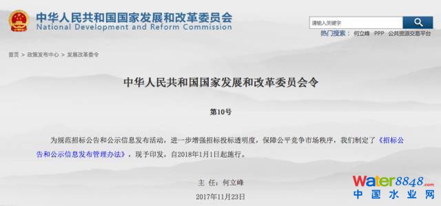 國(guó)家發(fā)改委發(fā)布《招標(biāo)公告和公示信息發(fā)布管理辦法》,2018年1月1日起施行!
