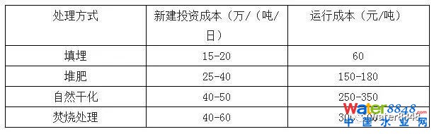 不同污泥處理技術(shù)成本對(duì)比