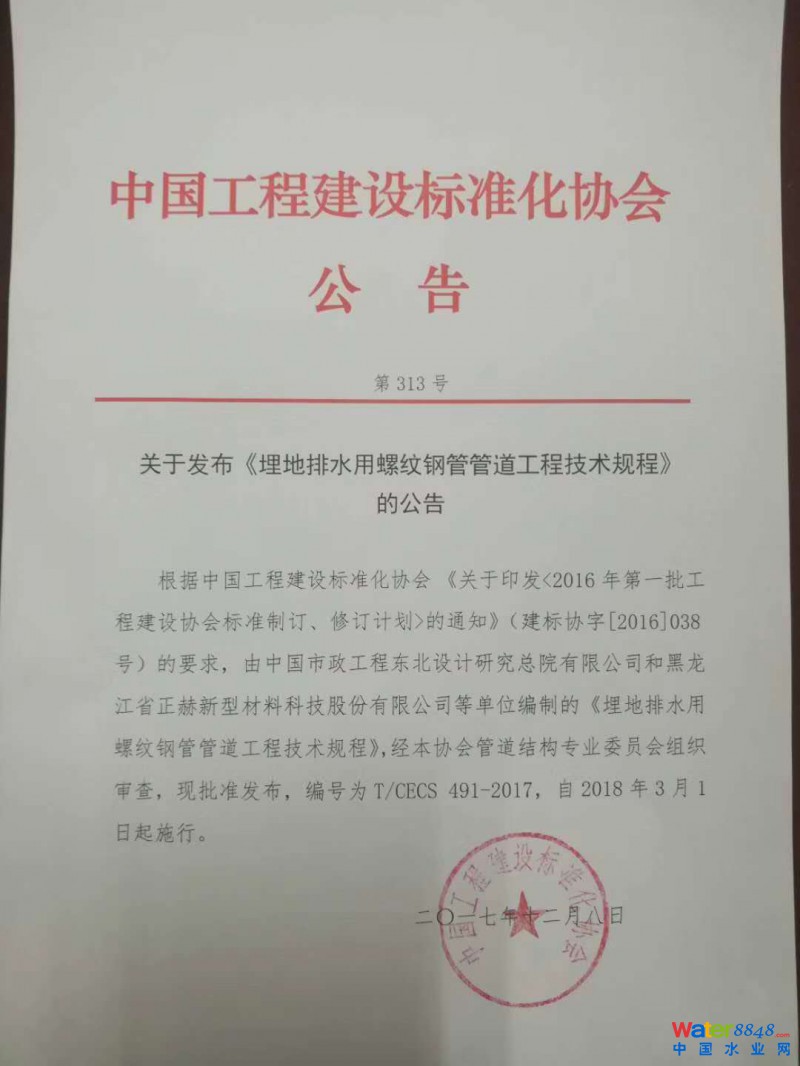 關(guān)于發(fā)布《埋地排水用螺紋鋼管管道工程技術(shù)規(guī)程》 的公告