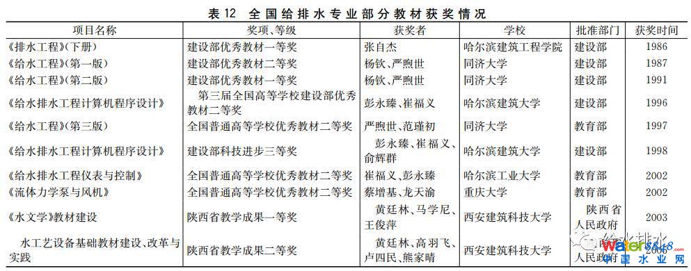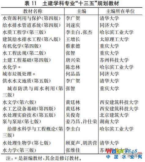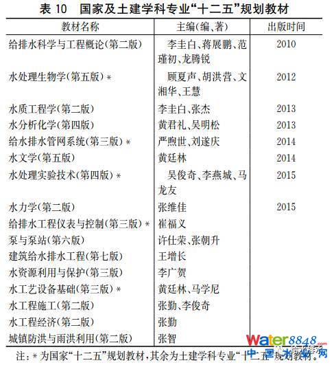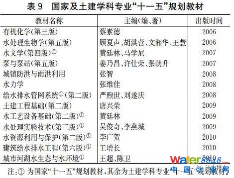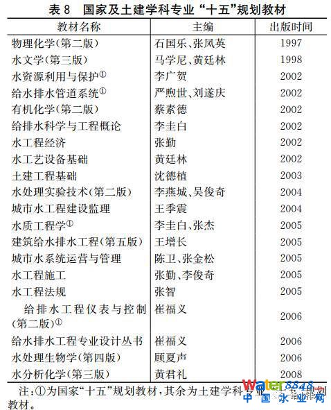 “九五”期間,給排水專業(yè)有3部教材被評為國家“九五”重點教材、5部教材被評為建設(shè)部“九五”重點教材(建設(shè)部建教[1996]591號文件),見表7。