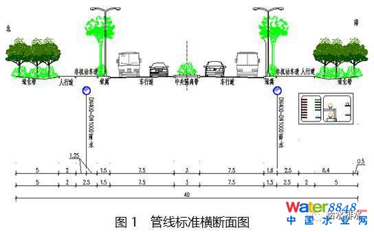(1) 雨水管渠。兩者同為重力流,受排出口標高影響,一般條件下,雨水管渠埋深較淺,為方便管線交叉,污水管道位于雨水管渠的下方。
