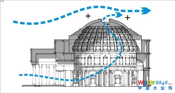 核心提示: 羅馬萬(wàn)神廟這樣的頂部敞開(kāi)式建筑,下雨時(shí)怎么辦? 中國(guó)給水排水