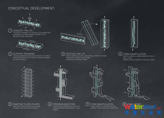 那有人會(huì)問(wèn),如果這是細(xì)節(jié),那設(shè)計(jì)的過(guò)程是什么?那是設(shè)計(jì)概念的發(fā)展,是從場(chǎng)地分析到概念到最終設(shè)計(jì)結(jié)果的整個(gè)推進(jìn)流程。流程中定會(huì)遇到問(wèn)題,問(wèn)題的解決方法和思考過(guò)程是我們要展示的細(xì)節(jié)。細(xì)節(jié)和推進(jìn)過(guò)程是相輔相成的關(guān)系,缺一不可。實(shí)際呈現(xiàn)在作品集中的話,大體是下面這個(gè)樣子: