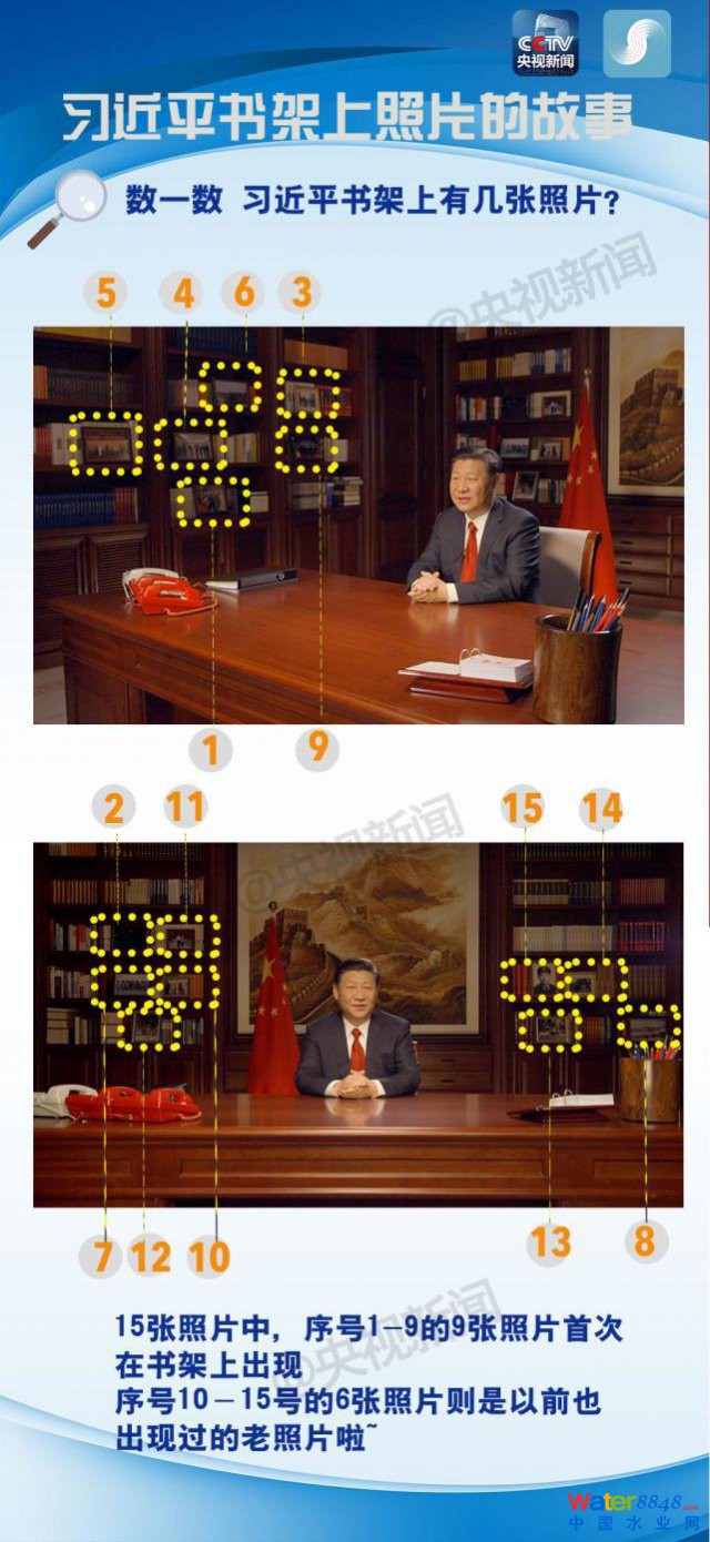 除了這 9 張照片,還有 6 張照片是以前就出現(xiàn)過(guò)在習(xí)主席書(shū)架上的老照片了。