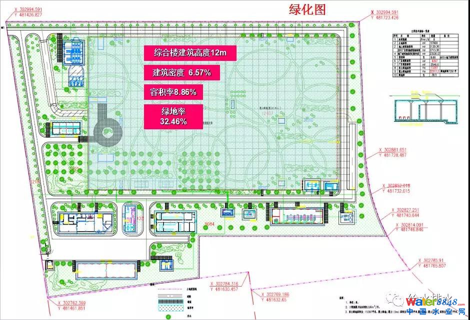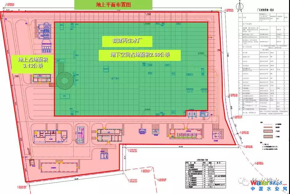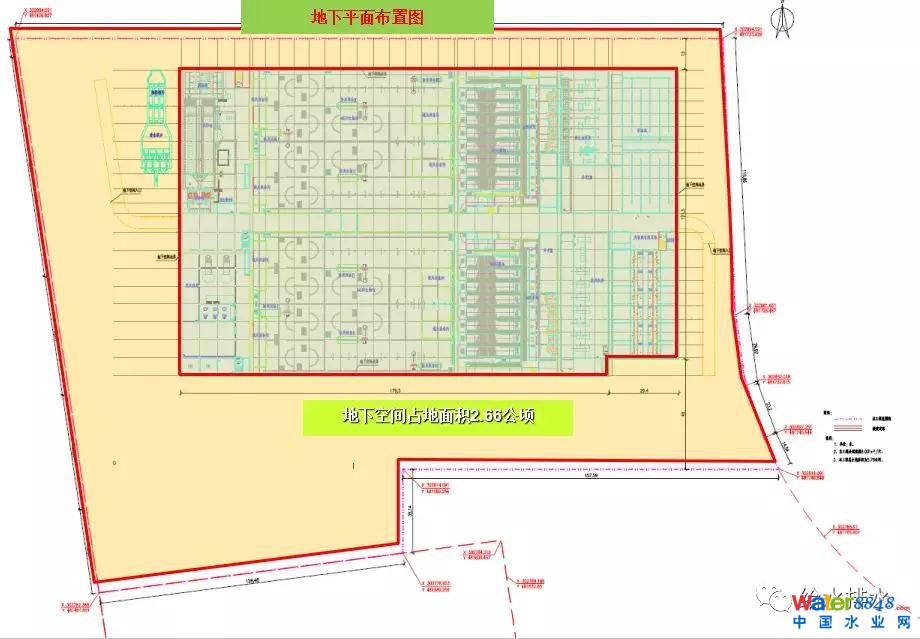 工程為8萬噸處理規(guī)模,占地面積5.79公頃,整個處理廠地下部分地下部分2.66公頃其他為地上部分。整個處理廠地下部分最深的地方埋深在16米,建好的地下部分,地下廠的上面有一米多的覆土,它的整體地方,整個廠的綠化率,如果不算廠的部分是32%的綠化率。
