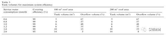 本次研究重點(diǎn)是分析雨水利用系統(tǒng)在長時(shí)間不間斷模擬狀態(tài)下的水力性能;谝幌盗械馁A水容積,屋頂面積和工業(yè)水耗用速率,我們對下列參數(shù)進(jìn)行了分析系統(tǒng)效率,發(fā)生溢流事件的頻率和溢流量,排向排水系統(tǒng)的溢流峰值的容積和周期、貯水池中附加調(diào)蓄容積的作用。