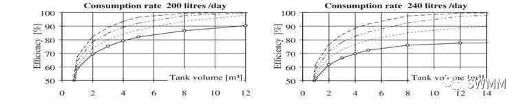 系統(tǒng)效率和貯存容積在不同用水速率下的關(guān)系