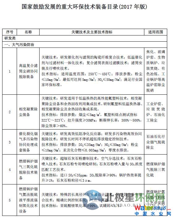 附件:國(guó)家鼓勵(lì)發(fā)展的重大環(huán)保技術(shù)裝備目錄(2017年版)