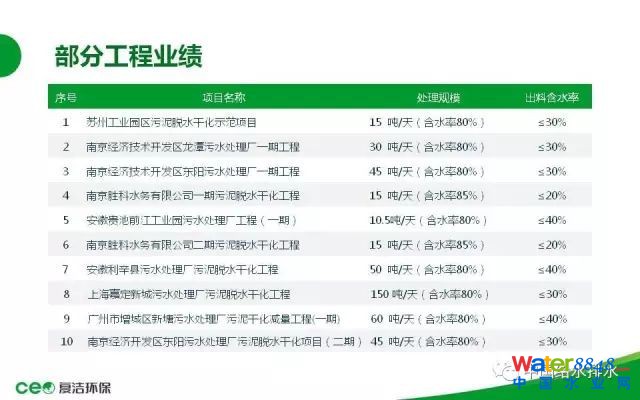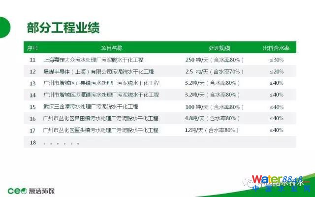 時間關(guān)系后面簡單一點(diǎn),就是我們的技術(shù)是2011年開始工業(yè)化投產(chǎn),2012年、2013年的六七年時間里,我們承接了包括南京、安徽、上海、廣州等地十幾個項(xiàng)目,目前在運(yùn)行的項(xiàng)目也有十幾個。這是蘇州工業(yè)園區(qū)的示范工程(10噸每天);南京開發(fā)區(qū)龍?zhí)段鬯幚韽S(30噸每天);南京經(jīng)濟(jì)開發(fā)區(qū)東陽污水處理廠(50噸每天),這是一期,二期也是我們做的,也是50噸的;勝科水務(wù)35噸,要求含固率達(dá)到20%以下;這是上海嘉定另外一個項(xiàng)目,這個項(xiàng)目規(guī)模設(shè)計(jì)150噸,這是去年年初已經(jīng)停產(chǎn)了,嘉定大政今年年初到現(xiàn)在運(yùn)行5個月左右;這是上海的一個工業(yè)項(xiàng)目,晟碟半導(dǎo)體一個做U盤的單位的危廢處理項(xiàng)目。其他的時間有限,不一一介紹了。這是我們二維碼還有聯(lián)系方式,如果有交流的各位領(lǐng)導(dǎo)專家同行可以多多聯(lián)系。