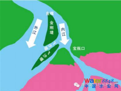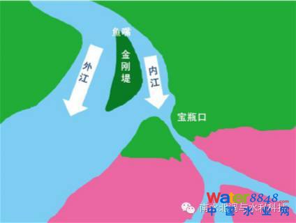 注:修建寶瓶口的目的主要是想將岷江江水分流部分進入成都平原,防洪減旱。
