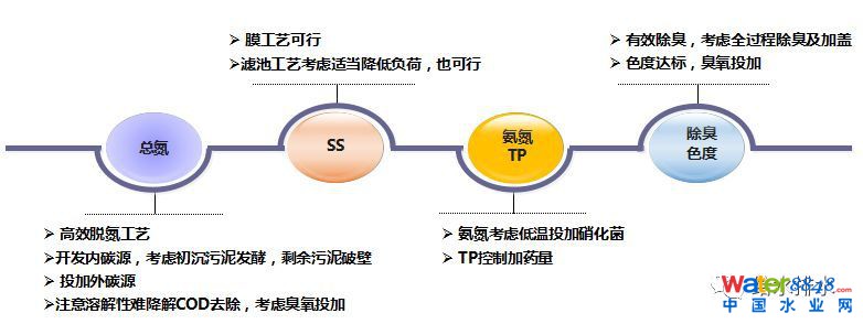 TN:在二級生物處理、后續(xù)深度處理中協(xié)同考慮,充分的利用原水中碳源,需重點考慮解決