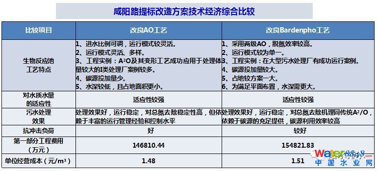 3.2.7 咸陽路污水處理廠提標改造方案綜合比較