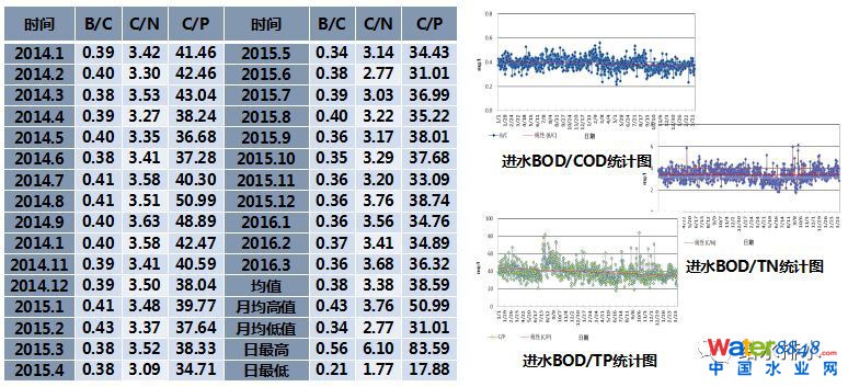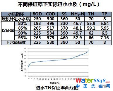 以咸陽路廠2014-2016年3月的水質實測數(shù)據(jù)為基礎,采用適當保證率確定設計進水水質。