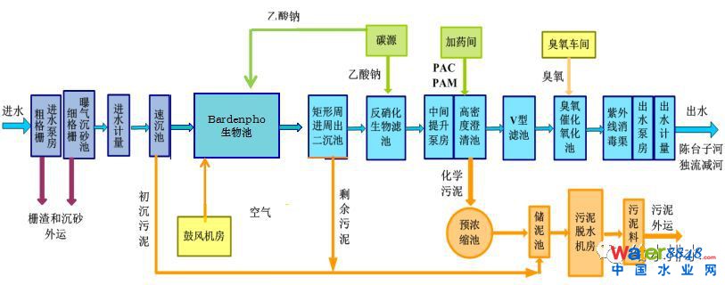 提出提標改造主體工藝路線:二級生物處理+深度處理+臭氧氧化。