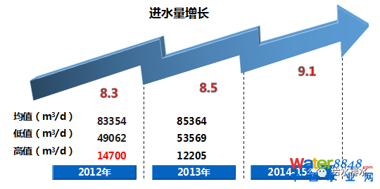 以北倉廠2014年的水質實測數(shù)據(jù)為基礎,采用適當保證率確定設計進水水質。