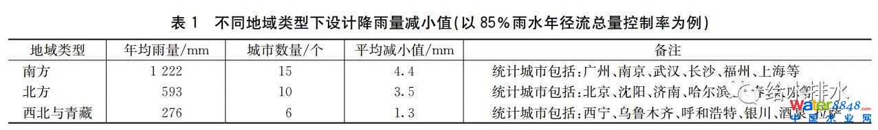從24 h降雨場次控制率的角度上看,由于小于等于2 mm的極端小降雨事件的場次貢獻(xiàn)率大(31城市平均為46%),統(tǒng)計中如果保留極端小降雨事件,全國31個城市95%的24 h降雨場次控制率對應(yīng)設(shè)計降雨量的減小值平均為10.6 mm,其中最大的為19.0 mm(?冢、最低為3.9 mm(拉薩);差值占比平均為25.8%,其中最大為39.1%(宜賓)、最小為17.0%(杭州)。統(tǒng)計中若不扣除極端小降雨事件將極大減小設(shè)施尺寸,降低對徑流污染物的去除效率,違背徑流源頭控制的初衷。因此在24 h降雨場次控制率的統(tǒng)計中需要扣除極端小降雨事件。