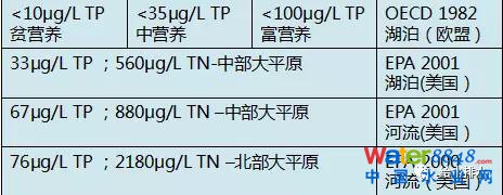 歐美敏感水體的氮、磷監(jiān)測(cè)值