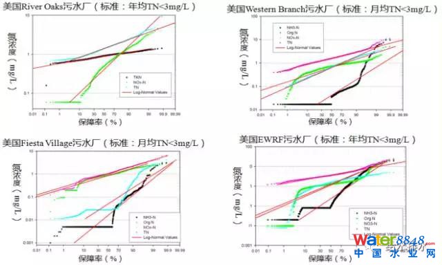 美國(guó)4座極限脫氮除磷污水廠出水氮指標(biāo)的概率統(tǒng)計(jì)