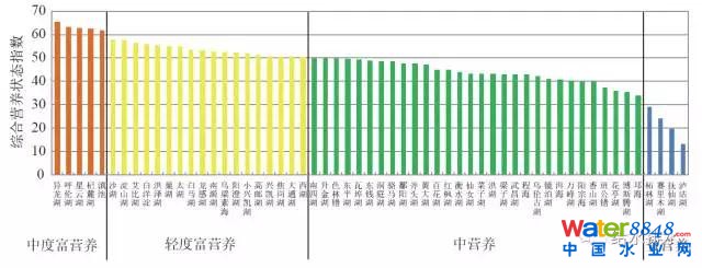 2016年中國(guó)重要湖泊營(yíng)養(yǎng)狀態(tài)比較(中國(guó)環(huán)境狀況公報(bào))