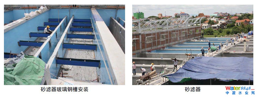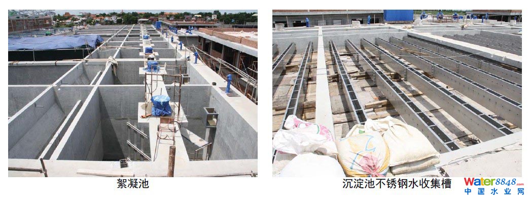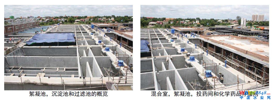 13萬立方米/天的自來水處理廠的設(shè)計(jì),建設(shè),安裝和調(diào)試,包括混合池,12組絮凝池,斜板(lamella)澄清池和砂濾器,23000立方米供水水庫,和供水泵站,包含6組傳輸泵,變頻調(diào)速器,化學(xué)儲存和計(jì)量系統(tǒng),氯氣中和系統(tǒng),22kV和400V開關(guān)柜,變壓器和電纜,儀器儀表,PLC和SCADA系統(tǒng)以及連接自來水廠與金邊現(xiàn)有供水網(wǎng)絡(luò)的2.5公里DN1600mm DICL供水傳輸管道系統(tǒng)。