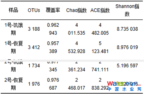 表 2 樣品的物種豐富度和多樣性分析