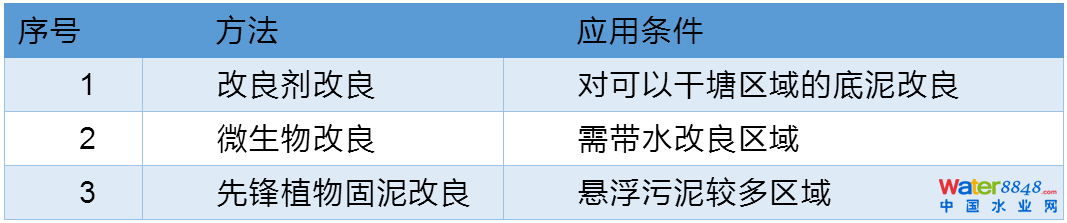 針對(duì)現(xiàn)場不同情況,采用了三種底泥改良方法,底泥經(jīng)過改良為沉水植物創(chuàng)造了良好生長條件。