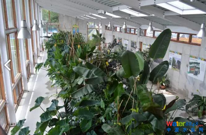聽起來逼格很高?其實污水處理真沒什么奧秘,OCSL的處理原理就很簡單。一開始,所有污物像人類排泄物和“灰水”例如廁所、洗手盆和淋浴等產(chǎn)生的廢水送入儲罐收集,然后輸送至生態(tài)機(jī)器(Eco-Machine)。第一階段是用兩個18立方米的化糞池和缺氧池作為調(diào)節(jié)預(yù)處理,出水流入四個人造濕地,內(nèi)襯橡膠,堆滿碎石,利用依附在植物根系上的生物膜對污水作進(jìn)一步凈化。據(jù)說此時污染物去除率已達(dá)75%。第三階段是好氧曝氣池,一個多級食物鏈的生態(tài)系統(tǒng),去除大部分的營養(yǎng)物。最后經(jīng)循環(huán)砂濾后,廢水就已變成符合標(biāo)準(zhǔn)的家庭用的清潔水源。這個生態(tài)機(jī)器是一個現(xiàn)代溫室構(gòu)造,太陽光伏板供電,里邊還能用作瑜伽課室。