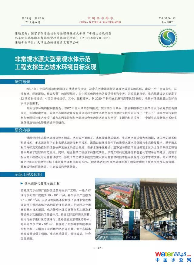 3、國家水體污染控制與治理科技重大專項“中新生態(tài)城新型水系統(tǒng)實施保障及智能化管理系統(tǒng)示范研究”(2012ZX07308-002)