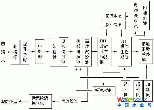 關(guān)鍵詞:曝氣生物濾池,高效沉淀池,預(yù)處理