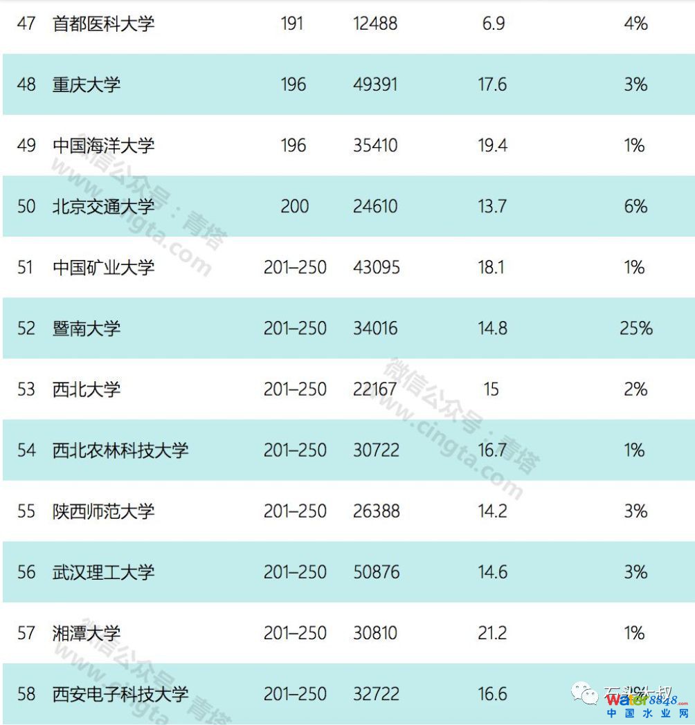 第二:上榜的高校中,排名前100中,只有一所西部的高校,西北交通大學,排名全亞洲第90.優(yōu)質(zhì)高校的分布,差距還是比較大。