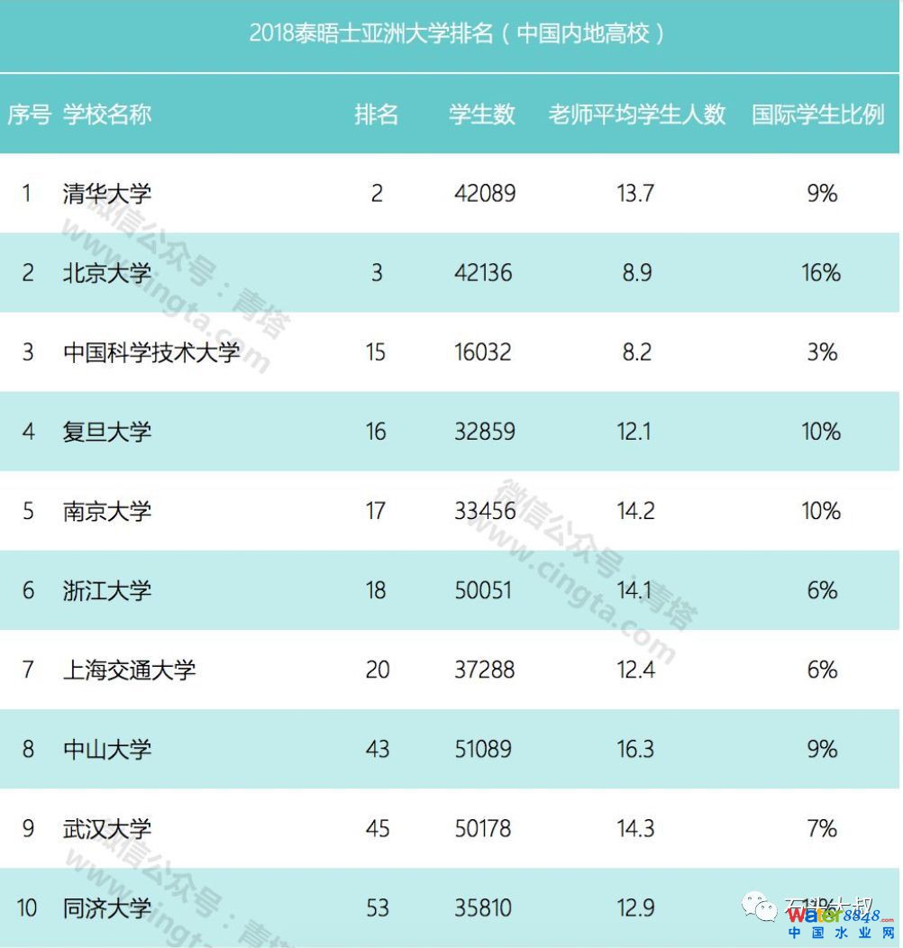 核心提示:2018泰晤士亞洲大學排名出爐,四川大學排名全國第30,全亞洲第118. 中國高校共有101所高校入圍,其中,亞洲大學前十高校中,有5所中國高校上榜。清華大學和北京大學分別排名第二、第三