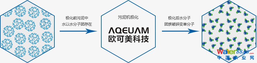 通過數(shù)碼智能極化裝置實(shí)現(xiàn),該裝置是采用特殊合金體并融合納米發(fā)生層,當(dāng)污水流經(jīng)合金體時(shí),通過納米發(fā)生層和特殊合金作用,合金體邊會(huì)向水中釋放出一種能量,水分子被激活,水分子團(tuán)族被打碎,水以單分子形態(tài)存在,誰的滲透性加強(qiáng),水分子容易從污泥脫出。