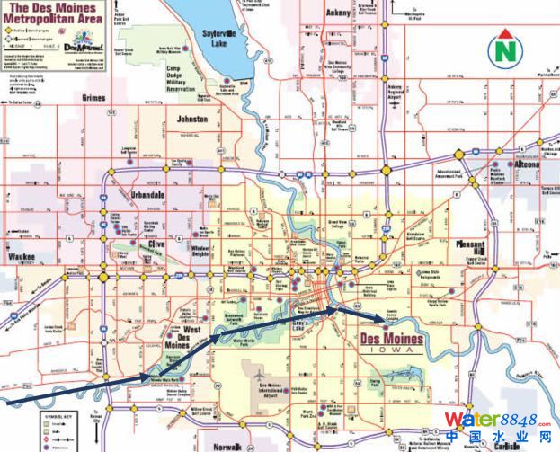 得梅因市(Des Moines)是艾奧瓦州第一大城市,州府所在地,總人口60萬。市民飲水取自從西向東流經該市的浣熊河(Raccoon River),下游最終匯入密西西比河。