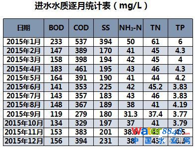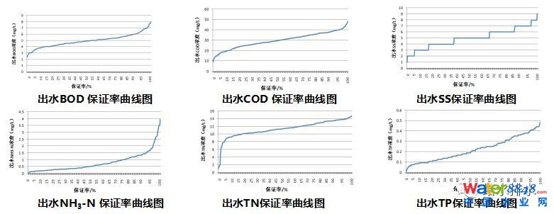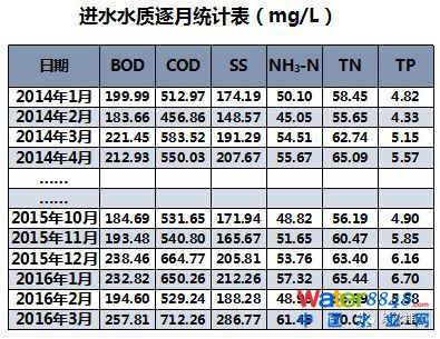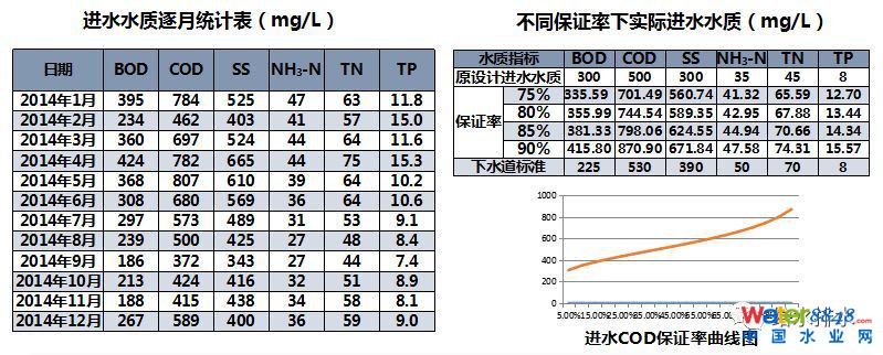 以咸陽路廠2014-2016年3月的水質(zhì)實測數(shù)據(jù)為基礎,采用適當保證率確定設計進水水質(zhì)。