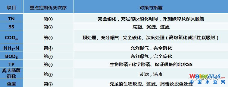 TN:在二級生物處理、后續(xù)深度處理中協(xié)同考慮,充分的利用原水中碳源,需重點考慮解決