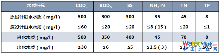 根據(jù)進出水水質(zhì)及各指標處理的難易程度,將TN、SS和CODcr確定為本次工程的重點處理項目,而BOD5、NH3-N和TP為重點關(guān)注項目。