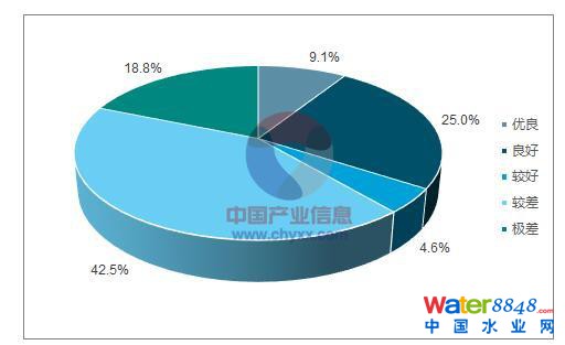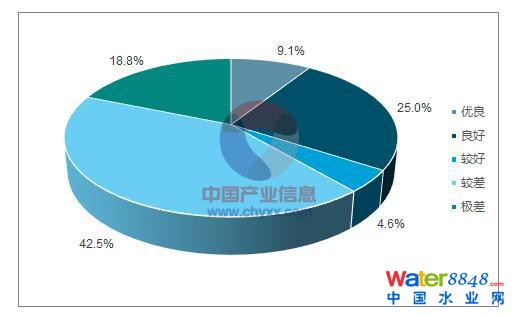 水污染嚴重是我國水環(huán)境面臨的另一挑戰(zhàn)。我國地表水、地下水均有不同程度的污染,地下水污染情冴尤為嚴重。受地表水、地下水污染影響,飲用水水源地也存在污染物超標現(xiàn)象,我國水污染現(xiàn)狀不容樂觀。地表水污染問題有待解決。我國《地表水環(huán)境質(zhì)量標準》將地表水域功能劃分為五類,Ⅰ~Ⅲ類具有飲用功能,Ⅳ~Ⅴ類具有使用功能。Ⅴ類以下的水被稱為劣Ⅴ類水,屬于污水。2016年10月全國956條河流的1655個斷面中,Ⅰ~Ⅲ類水質(zhì)斷面合計占比75%左右,Ⅳ~劣Ⅴ類以下水質(zhì)斷面合計占比約25%,地表水污染仍比較嚴重。地下水污染情冴尤為嚴重。2015年,我國5118個地下水水質(zhì)監(jiān)測點中,水質(zhì)為優(yōu)良、良好、較好、較差、枀差級別的監(jiān)測點比例分別為9.1%、25.0%、4.6%、42.5%、18.8%。地下水質(zhì)差的點位占比高達61.3%,污染情冴嚴重。飲用水水源亦存在污染,取水需要嚴栺處理。2015年,我國338個地級以上城市的集中式飲用水水源地取水總量為355.43億噸,服務(wù)人口3.32億人。其中,達標取水量為345.06億噸,占取水總量的97.1%。地表飲用水水源地共557個,達標水源地占92.6%,主要超標指標為總磷、溶解氧和五日生化需氧量;地下飲用水水源地共358個,達標水源地占86.6%,主要超標指標為錳、鐵和氨氮。較差的飲用水源水質(zhì)倒逼社會采用更好的水處理技術(shù)將其處理成可用于生產(chǎn)生活的凈水。