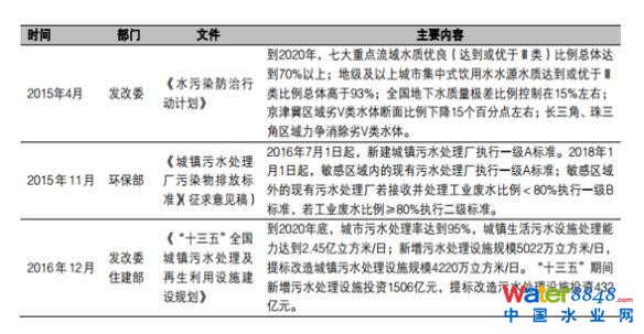 2017年中國污水處理行業(yè)發(fā)展現(xiàn)狀分析及未來發(fā)展前景預(yù)測 “十三五”期間新增污水處理設(shè)施投資1506億元,提標改造污水處理設(shè)施投資432億元,污水處理市場需求巨大。 污水處理相關(guān)政策相繼落地