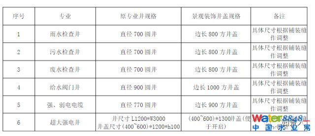 規(guī)格:按照綜合管網(wǎng)各專業(yè)井需求確定景觀裝飾井蓋大小,原則保證被覆蓋的專業(yè)井蓋可以開(kāi)啟;材質(zhì):邊框?yàn)?04不銹鋼,底版為鍍鋅鋼板,面層同周邊地面鋪裝材料;色彩:不銹鋼本色;