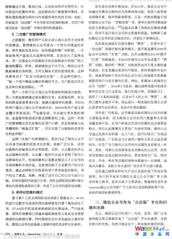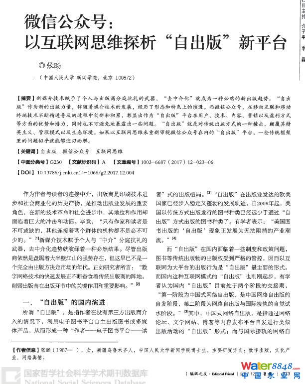 核心提示: 微信公眾號:以互聯(lián)網(wǎng)思維探析“自出版”新平臺 【關(guān)鍵詞】自出版 微信公眾號 互聯(lián)網(wǎng)思維   【作者】張旸   【作者單位】中國人民大學(xué)新聞學(xué)院 (原文刊于《編輯之友》2017年第12期)