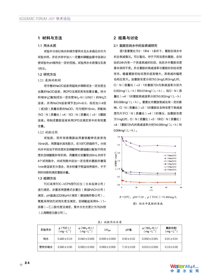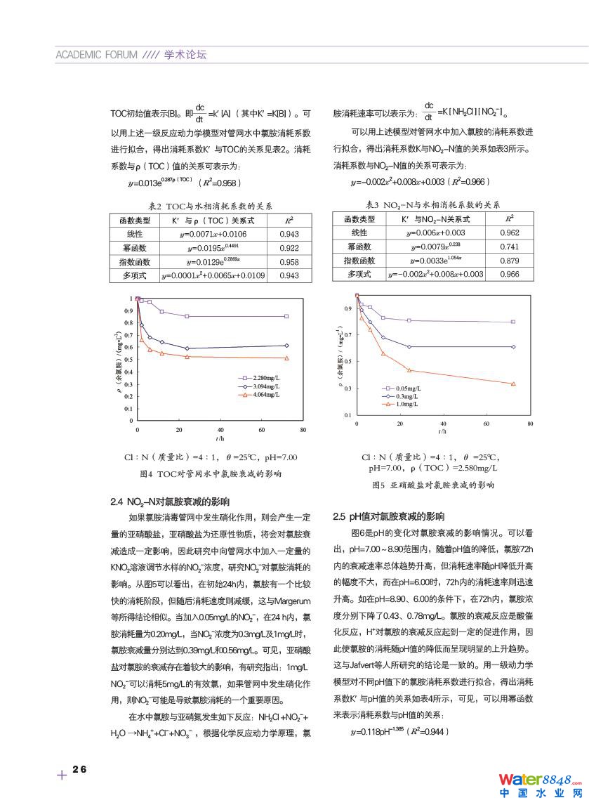 氯胺在給水管網(wǎng)中消耗規(guī)律探究 廣西壯族自治區(qū)城鄉(xiāng)規(guī)劃設(shè)計(jì)院